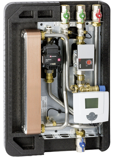Mit den Zirkulationsmodulen der Reihe TacoTherm Circ von Taconova lässt sich in größeren Gebäuden die hydraulische Verschaltung mehrerer Frischwasserstationen gestalten. Die Module sorgen in Kombination mit den Stationen für eine hygienische, bedarfsgerechte und energieeffiziente Trinkwassererwärmung im Durchflussprinzip. Die Wärmeenergie zur Trinkwassererwärmung beziehen die Module aus dem oberen Teil des Pufferspeichers. Als Wärmequelle können zum Beispiel Festbrennstoffkessel, Wärmepumpen oder auch Solaranlagen dienen. Durch eine dauerhafte Einschichtung des primärseitigen Rücklaufs im oberen Teil des Pufferspeichers wird im Zirkulationsbetrieb eine Speicherdurchmischung vermieden. Die Modulvarianten unterscheiden sich in der Ausrichtung des Heizungsvorlaufs: beim Modul Mega befindet sich dieser an der unteren, beim Modul Peta an der oberen Seite. Ein hoher Vorfertigungsgrad aller Armaturen und Komponenten stellt eine schnelle und einfache Montage und Inbetriebnahme sicher. Über eine optional erhältliche Modbus-RTU-Schnittstelle lassen sich die Zirkulationsmodule in die Gebäudeleittechnik integrieren.