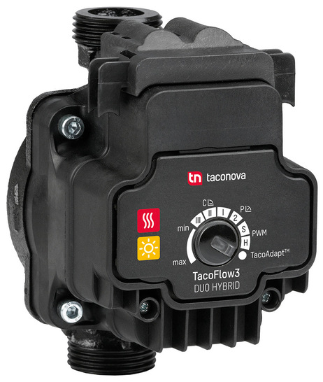 Mit der TacoFlow3 Duo Hybrid erweitert Taconova die Pumpenreihe TacoFlow3 um eine kompakte Umwälzpumpe für Heiz- und Solaranlagen. Die Pumpe erreicht eine Förderhöhe von bis zu 8,5 m und ist für interne, externe oder hybride Steuerung ausgelegt. Sie bietet Betriebsarten wie Min-Max, Proportionaldruck und Konstantdruck sowie die Funktionen TacoAdapt und PWM zur Anpassung an Heiz- und Solarprofile. Durch schlankes Design und flexible Kabelführung ist eine Installation auch bei begrenztem Platz möglich. Erweiterte Anschlussoptionen erleichtern die Integration in Heizkörper- und Fußbodenheizungen, Wärmeübergabestationen sowie thermische Solarsysteme mit PWM-Regelung. Die dritte Generation der Taco-Technologie ermöglicht eine effiziente Durchflussregelung in verschiedenen hydraulischen Systemen bei reduziertem Installationsaufwand und hoher Anpassungsfähigkeit an unterschiedliche Systemanforderungen.