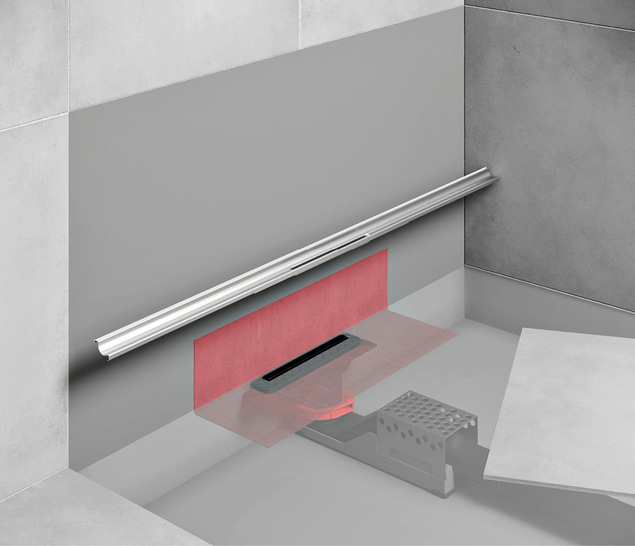 Die Duschrinne Tecedrainway wurde für eine dezente Integration im Übergang zwischen Wand- und Bodenfliesen entwickelt. Sie zeichnet sich durch einen sehr schmalen Ablauf und großzügige Justiermöglichkeiten aus. Das Edelstahlprofil ist in den Längen 110 und 160 cm erhältlich und nischenbündig kürzbar. Der Ablauf lässt sich beliebig ausrichten, unabhängig vom Anschlusspunkt der Abwasserleitung. Dadurch kann der Anschluss ohne komplexe Formteile und zusätzliche Verbindungsstellen im Estrich erfolgen. Eine geschmeidige Dichtmanschette erleichtert laut Hersteller die faltenfreie Einbindung in die Verbundabdichtung. Das integrierte 3D-Gefälle des Rinnenprofils optimiert den Wasserfluss so, dass ein Selbstreinigungseffekt entsteht und mögliche Bautoleranzen ausgeglichen werden. Haare gelangen direkt in die Abwasserleitung, ohne hängen zu bleiben. Ein leicht verdrehter Querschnitt (Strudel-Impuls-Geometrie) im hinteren Teil des Ablaufs erzeugt eine strudelförmige Wasserbewegung, die den Abfluss beschleunigt und intensiviert. Die nach DIN EN 1253-1 geforderte Möglichkeit zur mechanischen Reinigung der Abwasserleitungen lässt sich bei Bedarf mit einer 6-mm-Reinigungsspirale oder einem flexiblen 6-mm-Hochdruckschlauch durchführen. Die Rinne ist in den Farbvarianten Schwarz gebürstet, Bronze gebürstet, Messing gebürstet und Edelstahl gebürstet (PVD-Oberflächenveredelung) erhältlich.