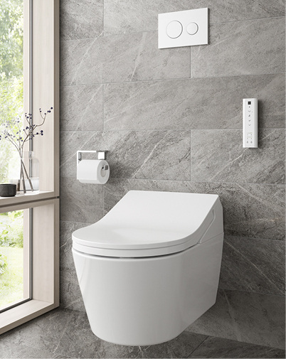 Das Washlet RX ist die neueste Entwicklung in Sachen Dusch-WC von Toto. Es wird auf die passende WC-Keramik (WC RP) aufgesetzt und verschmilzt mit dieser zu einer Einheit. Auch bei diesem Modell wird die Düse – sowie die gesamte Technik – in den Deckel oberhalb der Keramik integriert. Diese Trennung gewährleistet laut Anbieter höchste Hygiene. Die Düse ist in dieser erhöhten Platzierung oberhalb der Keramik vor Verschmutzungen geschützt; zudem befindet sie sich sauber hinter einer Verschlussklappe. Aufgrund dieser Düsenplatzierung ist auch gewährleistet, dass sie nicht mit dem Spülwasser verschmutzt wird und die gesamte Technik vollständig sauber bleibt, sollte das WC einmal verstopft sein. Zur Reinigung fährt die Düse in einem genau berechneten Winkel aus der Klappe heraus. Exakt dieser Winkel verhindert, dass Ausscheidungen auf die Düse fallen beziehungsweise das zur Intimreinigung verwendete Wasser auf die Düse tropft.