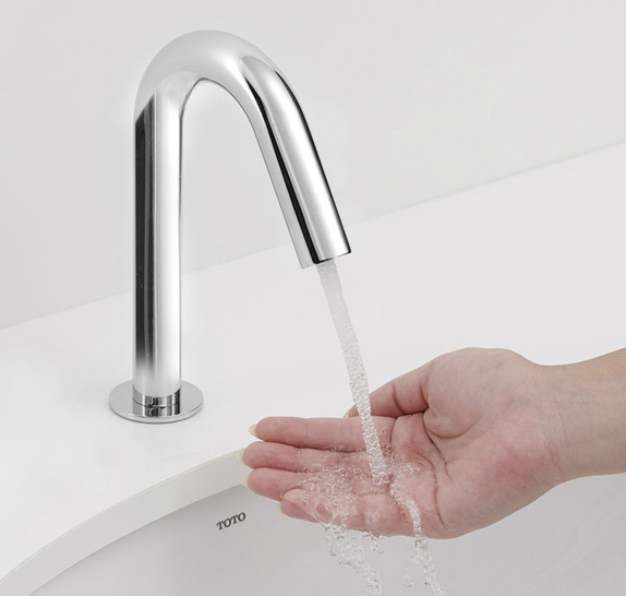 Toto hat neue Automatikarmaturen vorgestellt mit der Technologie „Self Power“ und der wassersparenden Technik „Eco Cap“. Für jede Waschtischform steht die passende Armatur zur Verfügung – also Einbau- oder Unterputz-, Möbel- oder Aufsatzwaschtisch. Beide Armaturenserien mit jeweils fünf Varianten in rundem und eckigem Design zeichnen sich durch einen niedrigen Wasserverbrauch und smarte, berührungslose Bedienung aus. Ein Sensor direkt am Ende vom Armaturenauslauf registriert die Handbewegungen präzise an der richtigen Stelle. Die Self-Power-Technik lässt sich auch als integriertes „Wasserkraftwerk“ bezeichnen: Der Sensor im Armaturenauslauf – laut Anbieter einer der kleinsten der Welt – registriert die Bewegung der Hände und aktiviert den Wasserfluss. Im Inneren der Armatur wirkt die zweite Technologie: Mit einem Generator wird die aus dem Wasserfluss entstehende Energie umgewandelt, um den Mikrosensor mit Strom zu versorgen.