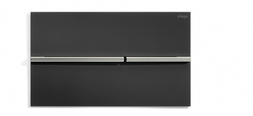 Viega hat auf Basis einer elektronischen Auslösung neue Designs für WC-Betätigungsplatten entworfen. Visign for More 201: Sie wird aus einer einzigen hauchdünnen Edelstahlplatte herausgelasert und -gepresst. In weich fließender Form erheben sich die Tasten für die beiden Spülmengen, die dann nur noch leicht angetippt werden müssen. Eine schöne Ergänzung ist der separat erhältliche LED-Einbaurahmen, der für eine dezente Beleuchtung der WC-Betätigungsplatte sorgt. Visign for More 202 hingegen setzt auf eine völlig neu gedachte Auslösung der WC-Betätigungsplatte. Hier ersetzt ein organisch geformter Knauf, der gedreht werden möchte, das bekannte Drücken (siehe Bild). Darüber hinaus verfügt sie serienmäßig über moderne LED-Technik, die entweder als Ambientelicht oder als Orientierungslicht genutzt werden kann. Visign for More 204 präsentiert sich mit coolem Understatement, das durch die präzise Linienführung der beiden Stege ins Auge fällt (siehe Bild unten). Die Stege müssen nur leicht angetippt werden und schon wird die WC-Spülung für die kleine beziehungsweise für die große Spülmenge ausgelöst. Auch bei dieser WC-Betätigungsplatte ist ein LED-Einbaurahmen als Zubehör erhältlich. Bei den WC-Betätigungsplatten „Visign for More 205 sensitive“ und „Visign for Style 25 sensitive“ reicht es dagegen schon, einfach die Hand am jeweiligen grafisch hervorgehobenen Funktionsfeld vorbeizuführen, und die Spülung startet. Das größere Feld steht für eine Vollspülung, das kleinere Feld symbolisiert die wassersparende Variante, die je nach Einstellung 2, 3 oder 4 l beträgt. Berührungslosen Komfort bietet auch die „Visign for Public 12“, die per Infrarottechnik ausgelöst wird. Sie ist in Edelstahl gebürstet beziehungsweise in Edelstahl Weiß glänzend erhältlich.