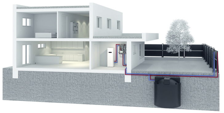 Neu beim Eis-Energiespeicher Vitoset ist die aus robustem, recyclingfähigem Kunststoff statt aus Beton hergestellte Zisterne und die Integration in komplette Paketlösungen für Nennwärmeleistungen von 6,0 bis 17,2 kW. Der nun deutlich leichtere Eis-Energiespeicher fasst rund 10 m³ normales Trinkwasser.