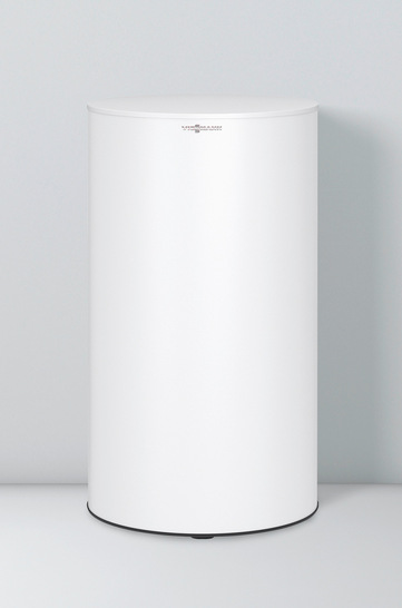 Die Speicher-Wassererwärmer Vitocell 100 wurden in Zusammenarbeit mit Fachpartnern so entwickelt, dass die Aufstellung bis 200 l Inhalt von einer Person zu bewerkstelligen ist. Ein abgerundeter Bodenring, der Teil der Transportverpackung ist, vereinfacht das Abnehmen des Speichers von der Palette – der Vitocell 100 wird samt Bodenring heruntergekippt und zum Aufstellort gerollt. Dort wird der Ring dann entfernt.