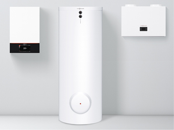 Die neue Version der Warmwasser-Wärmepumpe Vitocal 262-A (Typ T2W) für die Wandmontage nutzt die Wärme aus der Außenluft oder aus der Um-/Abluft des Aufstellraums. Damit erwärmt das Wandmodul bis zu 500 l große mono- oder bivalente Speicher auf bis zu 65 °C. Der COP-Wert nach EN 16147 liegt bei A20/W20 °C über 3.