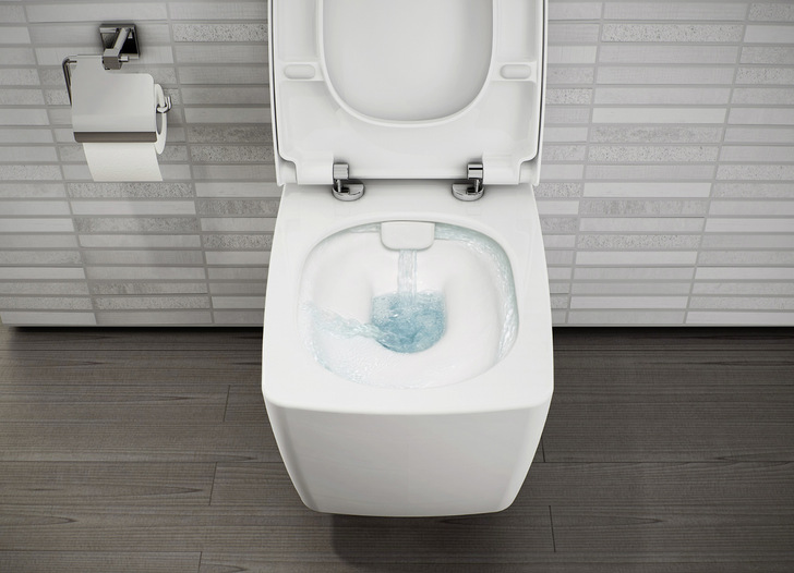 Mit Vitra-Flush 2.0 hat Vitra Bad ein spülrandloses WC mit optimierter Wasserführung entwickelt. Mittels einer seitlich ablaufenden Spülströmung erhält das Keramikbecken eine Flächenbespülung, die es sauber auswäscht. Ein Spülverteiler lenkt das Wasser in drei Richtungen und verhindert Spülwasserspritzer. Das Design des Spülverteilers ist so konzipiert, dass, unabhängig vom Spülkastenhersteller oder von der Bauhöhe, angepasste Volumenströme möglich sind. Ist der Spülstrom zu schwach oder zu stark, kann er über den Spülverteiler manuell eingestellt werden. Zur Reinigung ist das Element abnehmbar.