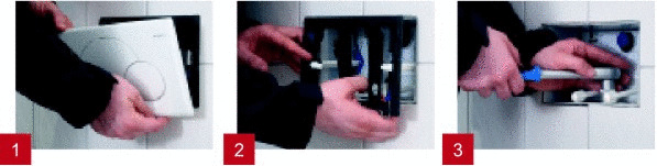 1. Nach dem Lösen der Befestigungsschrauben an der WC-Keramik die Betätigungsplatte demontieren