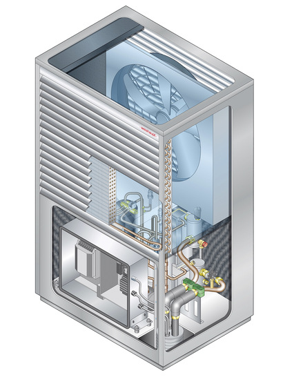 Das pulverbeschichtete Aluminiumgehäuse macht die Luft/Wasser-Wärmepumpe Aeroblock WAB 8 und 11 (modulierend bis 8 bzw. bis 11 kW) sehr witterungsbeständig. Die Auskleidung mit Akustikmatten, optimierte Alu-Lamellen und spezielle Ventilatortechnik sorgen für einen sehr leisen Betrieb. Kernelemente der beiden Monoblockgeräte mit R290 sind der BlueFin-Verdampfer mit extragroßen Flächen (24 m² bzw. 35 m²) sowie das elektronische Expansionsventil mit Schnellanlauf für Heizung, Kühlung und Abtauung. Der Low-Sound-Scroll-Verdichter mit Invertertechnik steht u. a. für eine hohe Laufruhe und das schnelle Erreichen der Sollwerte. Ein Entlüftungs- und Schlammabscheidesystem gehört zur Serienausstattung.