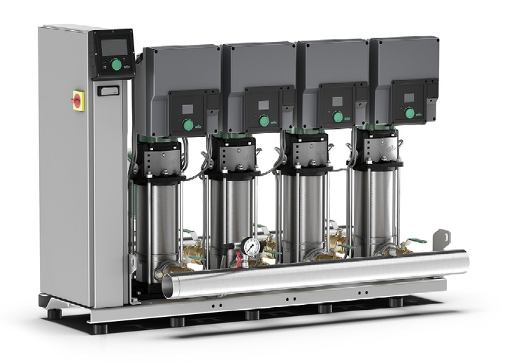 Die Druckerhöhungsanlage Wilo-SiBoost2.0 Smart Helix VE eignet sich zur betriebssicheren Wasserversorgung in Trink-, Kühl-, Prozess- und Löschwasseranwendungen. Mit druckverlustoptimierter Hydraulik, IE5-Motortechnologie und dem Betriebsmodus p-v erfüllt sie nach Herstellerangaben höchste Energieeffizienzanforderungen. Außerdem lässt sich die Druckerhöhungsanlage über das vollgrafische Farbdisplay mit Klartexten und intuitiver Menüführung einfach in Betrieb nehmen und bedienen. Für einen zuverlässigen Betrieb des Pumpensystems sorgen integrierte Schutzfunktionen. Zu diesen zählen Überlastschutz, Trockenlaufschutz und Wassermangelsicherung mit automatischer Abschaltung. Die optionale Schnittstelle zur SCADA-Anbindung ermöglicht des Weiteren eine Überwachung und Leckage-Erkennung. Die Einbindung der Anlage in die Gebäudeautomation ist serienmäßig über Modbus TCP und BACnet IP sowie weitere optionale Feldbusse möglich. Erweiterte Kommunikationsschnittstellen bietet das Wilo-Gateway.