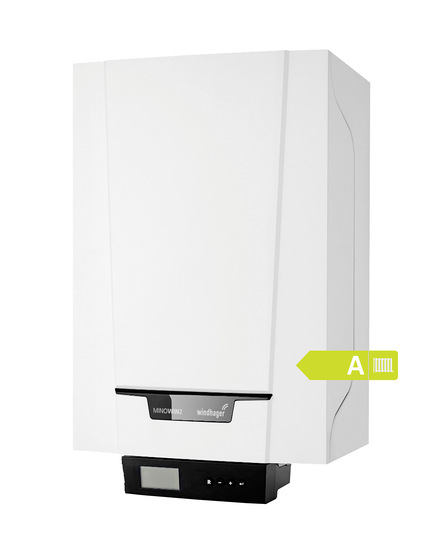 Mit 37 × 54 × 36 cm (B × H × T) und 25 kg Gesamtgewicht gehört der Gas-Brennwertheizkessel Minowin2 zu den kleinsten und leichtesten seiner Klasse. In die kompakte Bauweise sind Umwälzpumpe, Ladeventil und ein 8-l-Ausdehnungsgefäß (optional 12 l) bereits integriert. Er ist für Heizsysteme mit einem Heizkreis und – bei gleichem Platzbedarf – mit integriertem Platten-Wärmeübertrager zur Trinkwassererwärmung erhältlich. Der Kesselwirkungsgrad bei Teillast (50/30 °C) wird mit über 110 % angegeben. Lieferbar sind zwei Leistungsgrößen mit 15 und 25 kW Heizleistung und 27,5 kW Leistung für die Trinkwassererwärmung (bei Kombiausführungen). Der Hersteller gewährt auf das Gerät bis zu fünf Jahre Vollgarantie und zehn Jahre Materialgarantie auf den Wärmeübertrager.