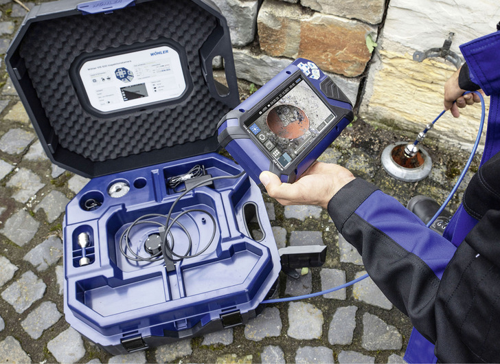 Eine neue Kamera der VIS-Serie ist erhältlich: Die Inspektionskamera Wöhler VIS 500 bietet das bewährte Koffersystem mit neuer Technik und einer verbesserten Bildqualität. Das Ergebnis: Selbst bei Inspektionen in dunklen Rohren liefert die Kamera klare und farbechte Bilder, auf denen Details gut erkennbar sind. Aufgrund der wechselbaren Kameraköpfe mit den Durchmessern 26 mm und 40 mm kann sie bei einer Vielzahl unterschiedlicher Einsätze genutzt werden. Den dreh- und schwenkbaren Kamerakopf mit 40 mm steuert der Nutzer intuitiv über ein Tastenkreuz, sodass Schadstellen auch an den Seiten des inspizierten Rohres oder Raumes nicht übersehen werden. Da die Kameraköpfe über einen Sender verfügen, ist eine Ortung im Rohr mit dem Wöhler L 200 Locator problemlos möglich. Bei der Inspektion gefundene Schäden in Rohren können dann durch eine gezielt gesetzte Öffnung behoben werden, sodass überflüssiger Bauschutt vermieden wird. Bilder und Videos werden wahlweise im internen Speicher der Kamera oder auf einem USB-Stick gespeichert. Die Lithium-Ionen-Akkus verfügen über eine Laufzeit von sechs Stunden.