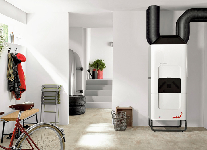 Die Kühleinheit Zehnder ComfoClime 36 verfügt über eine modulierende Luft/Luft-Wärmepumpe, die bei der zentralen Wohnungslüftung die Zuluft je nach Bedarf vortemperiert. In Kombination mit einem Lüftungsgerät ComfoAir Q600 ST verhindert sie im Sommer zu heiße und zu feuchte Raumluft.