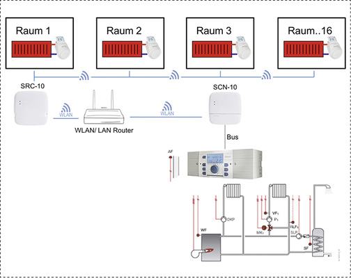 - den Smile-WLAN Gateways (Smile Connect SCN-10 und ergänzend Room Connect SRC-10, sofern im Endausbau eine Verbindung zur Einzelraumregelung hergestellt werden soll),