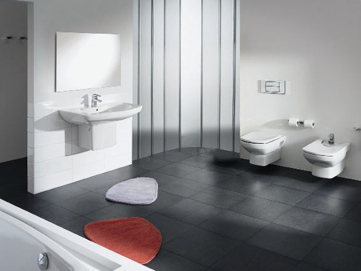 Zubehör: Acrylbadewanne Hall 180 x 80, 170 x 75 cm, Eckbadewanne 150 x 100 cm, auf Wunsch mit verschiedenen Whirlpoolsystemen, Acrylduschwanne Hall 140/120 x 80 cm, 100 x 100 und 90 x 90 cm, WC-Sitz mit Deckel-Absenkautomatik, Bidetabdeckung, Armaturen der Serien Moai und Targa, Accessoires der Serie Select