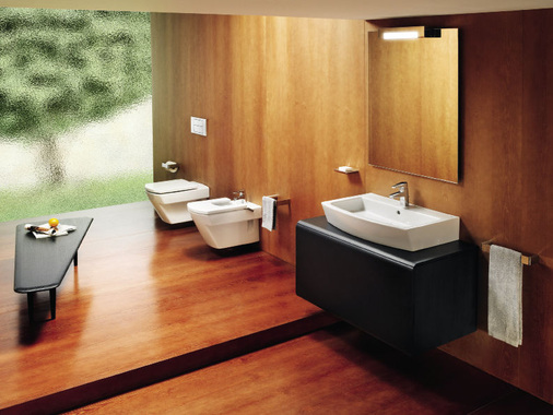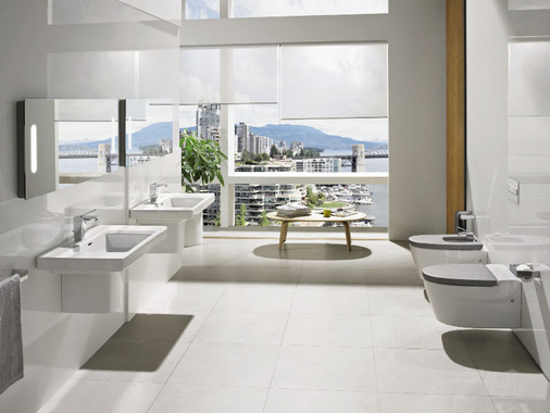 Die Keramik zeigt klare, funktionelle und sanft geschwungene Linien für eine optimale Raumnutzung, mit Waschtischen in vielen Größen, Tiefen und Formen. Alle lassen sich mit Säule oder Halbsäule kombinieren. Ein weiteres pfiffiges Detail ist der aufklappbare Deckel für das bodenstehende und wandhängende Bidet.