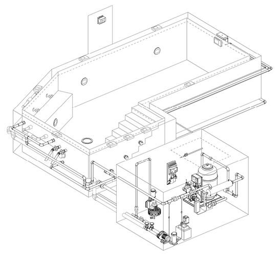 Installations- und Rohrleitungsplan für ein privates Schwimmbecken.