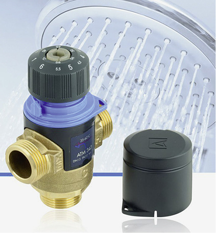 Die neuen thermischen Mischventile ATM von Afriso wurden für Warmwasserregelungen in Sanitärinstallationen sowie für kleinere Fußbodenheizkreise, die direkt an den Vorlauf (max. 60 °C) angeschlossen werden, konzipiert. Zudem können sie in Wand- oder Fußbodenheizungen eingesetzt werden, da diese eine konstante Mischwassertemperatur benötigen, um Schäden an Böden und Rohrleitungen zu vermeiden. Die thermischen Mischventile bestehen aus einem Messing-Grundkörper sowie einem Regelknopf mit Temperaturskala aus Kunststoff und einer Haube mit Sichtfenster. Die Mischventile sind in acht Varianten erhältlich, die wahlweise in den Bereichen 20/43 °C oder 35/60 °C stufenlos einstellbar sind. Das wartungsfreie Mischventil ist für Trinkwasser oder Wasser mit max. 50 % Glykolbeimischung und Mediumtemperaturen bis max. 90 °C (kurzzeitig 110 °C) einsetzbar. Der Nenndruck beträgt max. 10 bar und der dynamische Arbeitsdruck max. 5 bar. Das Ventil arbeitet mit einer Genauigkeit von ± 2 °C (EN 1111) und ist mit den Anschlüssen G¾ AG, Rp¾ IG, G1 AG sowie den Kvs-Werten 1,6 m³/h oder 2,5 m³/h lieferbar.