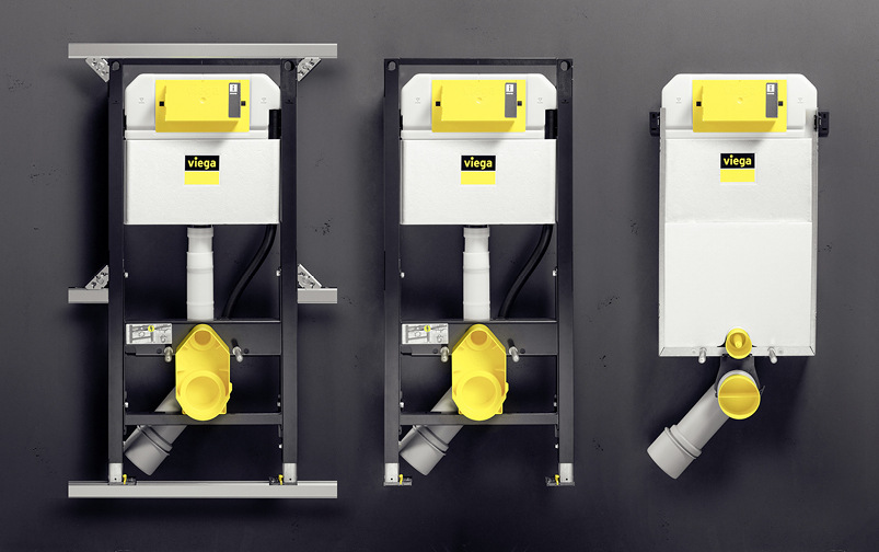 Der Spülkasten von Viega ist in jeder Systemanwendung identisch und mit rund 50 verschiedenen Betätigungsplatten kompatibel. Auch der nachträgliche Tausch einer Betätigungsplatte ist problemlos möglich, zum Beispiel um eine häufig unterschätzte Barriere abzubauen – die Sehbehinderung. Dazu tragen Betätigungsplatten bei, die einen starken Farbkontrast zur Vorwand bilden. Auch berührungslose Auslösungen können im Seniorenbad eine große Hilfe sein. Hierfür sollte aber in der Vorwand vorsorglich ein Stromanschluss vorgesehen werden.