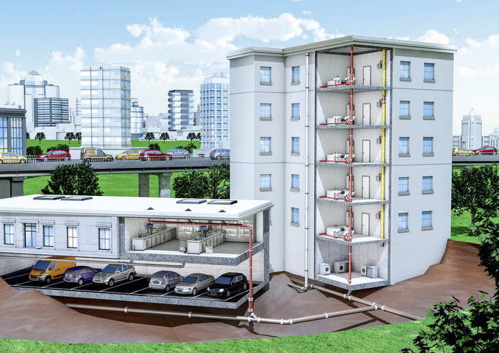 Einsparungen bei Material- und Lohnkosten sowie die Platzersparnis sind nur einige Gründe, die für den Einsatz von DN 80 gegenüber DN 100 bei Anschluss von WC-Anlagen, sowohl bei Neubaumaßnahmen als auch bei der Altbaumodernisierung, sprechen. So können zum Beispiel sechs Einfachwohnungen mit WC-Anlagen bis 6 l Spülwassermenge an eine Schmutzwasser-Fallleitung DN 80 angeschlossen werden (Bild 4).