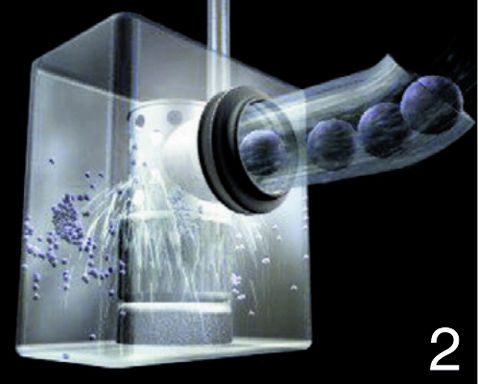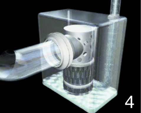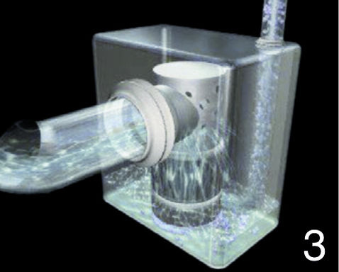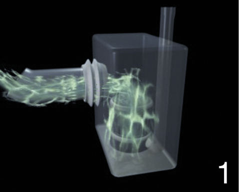 Bild 3: Die zerteilten Partikel werden zusammen mit dem im Behälter enthaltenen Wasser durch die Druckleitung weggefördert. Dies dauert ca. 15 bis 20 Sekunden.
