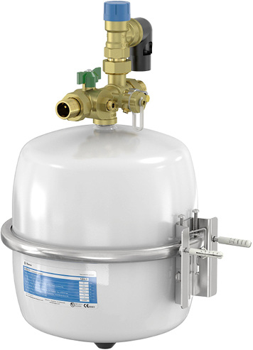 Die Sicherheitsgruppe Securfix von Flamco vereint alle Anforderungen zur Absicherung eines geschlossenen Trinkwassererwärmers. Gemäß DIN1988 und DIN4753-1 schützt das Sicherheitsventil PrescorB vor Überdruck, ein Rückflussverhinderer mit Prüfeinrichtung verhindert das Zurückfließen von erwärmtem Wasser. Des Weiteren beinhaltet die Sicherheitsgruppe eine Systemabsperrung, eine Wartungsabsperrung per Drei-Wege-Kugelhahn mit Gefäßentleerung und einen Ablauftrichter. Zum Lieferumfang gehört auch eine Aufhängzarge mit Schnappmechanismus. Das Membranausdehnungsgefäß vom Flamco-Typ AirfixA mit Butylmembran vermeidet ein ständiges Ansprechen des Sicherheitsventils bzw. den Wasserverlust beim Aufheizen ohne entlastende Zapfvorgänge. Eine Durchströmungseinrichtung sorgt dafür, dass das gesamte Leitungswasser durch den Behälter geführt wird. Securfix ist DVGW-zertifiziert.
