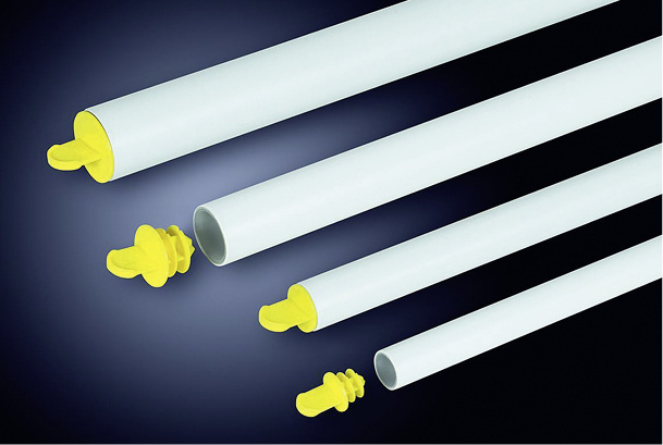 Ein wichtiger Faktor für die Trinkwasserhygiene im gesamten Leitungsnetz ist der ordnungsgemäße Umgang mit den Materialien auf der Baustelle. Damit die alpex-Rohre nicht bereits vor Installation und Inbetriebnahme der Anlage verschmutzen und später die Trinkwasserqualität mindern, sollten sie bis zur Verarbeitung konsequent verschlossen bleiben. Der neue Rohrstopfen von Fränkische ist dafür eigens konzipiert. Handwerker können den leuchtend gelben Verschlussstopfen einfach einstecken, über eine Lasche entfernen und für weitere Installationsabschnitte wiederverwenden.