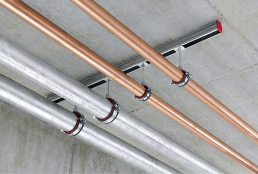 Neu im Befestigungs-Programm von Hilti ist das Schienenmontagesystem MM , das speziell auf die Anwendungen in der Sanitär-, Heizungs- und Lüftungsbranche abgestimmt ist. Mit dem neuen Montagesystem lassen sich Rohre einfach befestigen: Über einen Klick-Mechanismus können Anbindungselemente für Schellen, Winkel oder Schienenfüße in die Schiene gedrückt werden. Die Gewindeplatte verriegelt sich im Schienenprofil und ist vorfixiert. Dadurch verrutscht die Schienenanbindung weder in horizontaler noch in vertikaler Position, kann aber weiterhin nachjustiert und ausgerichtet werden. Verzahnte C-Profile sorgen für den Halt aller Bauteile an der MM-Schiene und die umgebördelten Langlöcher am Schienenrücken verstärken die Schiene am Befestigungspunkt. Überdimensionierungen, z. B. zu stark ausgelegte Montageschienen, und damit verbundene, unnötige Kosten können auf diese Weise vermieden werden. Die schnelle Montage der vormontierten Anbindungselemente spart zudem Zeit und bewährt sich vor allem bei Überkopf-Arbeiten und Schienenkonstruktionen. Einzel- und Mehrfachrohrabhängungen sind ebenso möglich wie Rohrabhängungen an Stahlträgern, die mit einer Trägerklammer MM-T ohne Schweißen oder Bohren befestigt werden können.