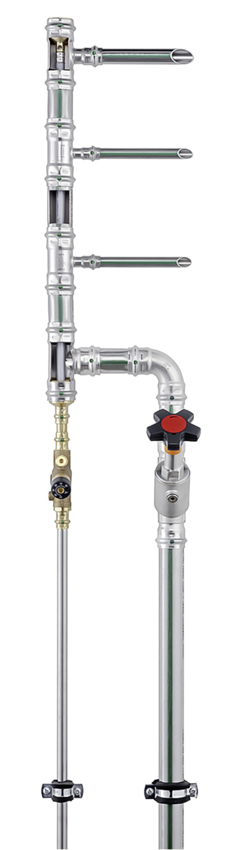Das ist umso herausfordernder, da auch in den Gebäuden erhebliche Wärmelasten auf die PWC-Installation einwirken. Es beginnt in Haustechnikzentralen, wenn Trinkwasser-Installationen neben leistungsstarken Wärmeerzeugern bzw. großen Speichern verlaufen, setzt sich bei parallel geführten warm- und kaltgehenden Rohrleitungen in Schächten und Vorwandinstallationen fort und endet gewissermaßen an Entnahmestellen, deren Armaturen durch zirkulierendes Warmwasser 24/7 mit Wärme beaufschlagt werden.