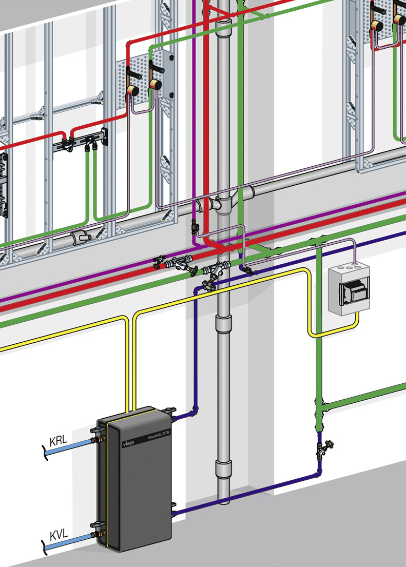 Hier gibt es den ausdrücklichen Hinweis, dass „bereits in der Planung der Trinkwasseranlage [...] der Schutz des Trinkwassers (kalt) vor Wärmequellen und Wärmelasten zu berücksichtigen“ sei. Diese Forderung lässt sich am besten über eine Installationsstrategie erfüllen, zu der folgende Punkte gehören sollten: