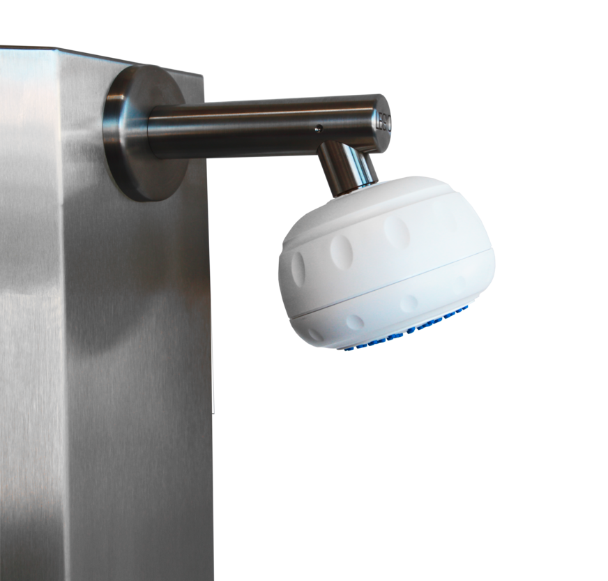 LEGIO beschäftigt sich seit über 20 Jahren mit dem Thema Trinkwasserhygiene und legt bei der Lösung von bakteriologisch verunreinigtem Trinkwasser großen Wert auf ein optisch ansprechendes, sowie funktionales Produktdesign. Speziell bei Einsätzen im öffentlichen Bereich wurde eine robuste Gewindelösung aus Metall gewählt. Ein hochwertiger Designbrausearm aus Edelstahl wurde ergänzend zur Kopfbrause LEGIO.brauseball entwickelt.