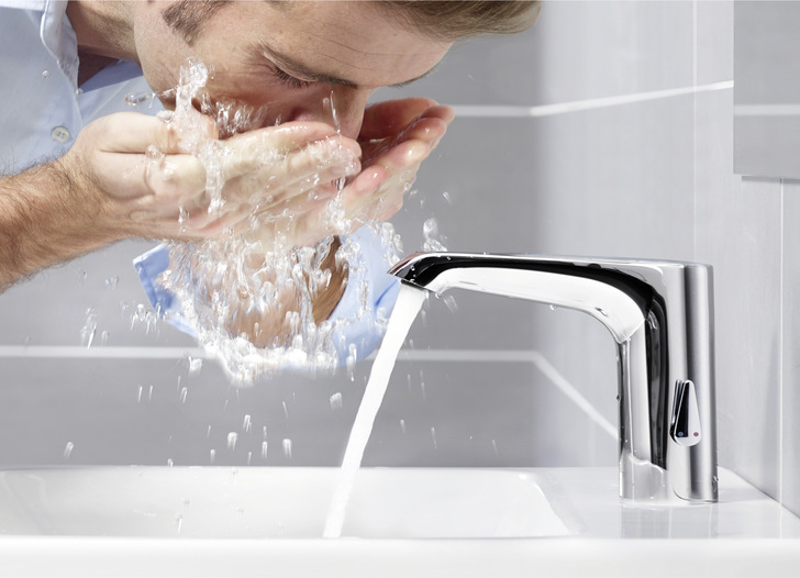 Ein weiterer Grund liegt in der Technik von Armaturen. Die UBA-Empfehlung fordert: „Die Beprobung von Mischwasser ist zu vermeiden.“ Anschließend benennt sie „Einhebel-Mischbatterien“, bei denen „dies nicht immer zu gewährleisten“ ist. Dieser Armaturentyp ist sicherlich exemplarisch gemeint, denn die Aussage gilt gerade auch für Armaturen mit Mischwellen und für Entnahmestellen hinter Thermostaten. Bei Letzteren wird bestimmungsgemäß immer Kaltwasser zugemischt, um die Temperatur auf die in DIN EN 806-2 Kapitel 9.3.2 geforderten Temperaturen für „Krankenhäuser, Schulen, Seniorenheime“, aber auch „Kindergärten und Pflegeheime“ zu begrenzen (Bild 3).