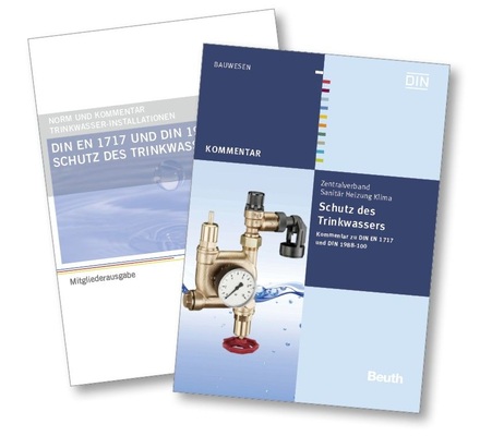 Als Grundlage dieses Fachartikels dient der DIN/Beuth-ZVSHK-Kommentar zur DIN EN 1717 und DIN 1988-100. Der Inhalt der Mitgliederausgabe des ZVSHK ist identisch mit der DIN/Beuth-Ausgabe. Jedoch können die Mitgliederausgaben des ZVSHK zu deutlich günstigeren Konditionen über die Fachverbände bezogen werden als einzelne Normen beim Beuth-Verlag.