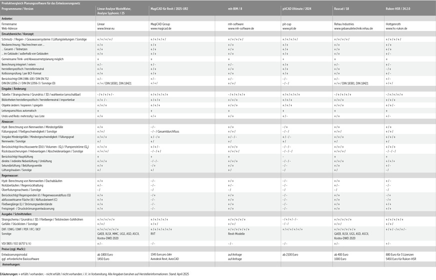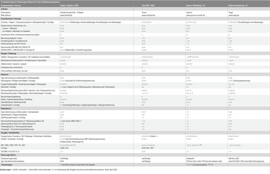 Sanitärkomplettlösungen ermöglichen die parallele Planung von Trinkwasser- und Entwässerungsanlagen, mit den oben genannten Vorteilen. Nur ein Teil der Programme bietet sowohl eine Abwasser- als auch eine Regenwasserablaufplanung. Unterschiede gibt es neben dem Funktionsumfang auch bei den Arbeits- und Bedienungsabläufen. Deshalb sollte auch darauf geachtet werden, wie einfach und intuitiv oder kompliziert und umständlich Bedienungsabläufe sind. Das gilt für die Planung ebenso wie für Änderungen.