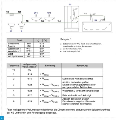 - Innerhalb einer Nutzungseinheit wird ein zweites Waschbecken, eine Duschwanne zusätzlich zur Badewanne, ein Bidet und Urinal bei der Ermittlung des Summendurchflusses nicht berücksichtigt.
