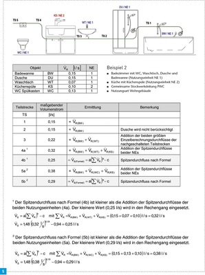 - Der Spitzenvolumenstrom innerhalb einer Nutzungseinheit wird durch die Aufsummierung der beiden größten Einzelberechnungsdurchflüsse bestimmt.