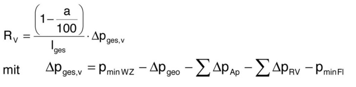 Für jeden Fließweg (Strömungsweg vom Berechnungsstartpunkt bis zur Entnahmearmatur) in einer Trinkwasserinstallation muss das verfügbare Rohrreibungsdruckgefälle R V in hPa/m ermittelt werden.