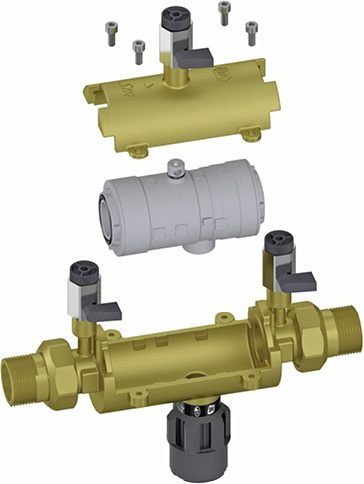 Mit dem Systemtrenner BA6610 in-line LF von Syr vereinfacht sich durch Patronentechnik die vorgeschriebene jährliche Wartung: Dazu wird der mit vier Schrauben befestigte Gehäusedeckel abgenommen, die Patrone durch eine normkonform geprüfte Komplettpatrone ersetzt und der Deckel wieder geschlossen. Danach ist der Systemtrenner wieder vollständig funktionssicher und einsatzbereit und sichert die Trinkwasserqualität nach EN1717 sowie DIN1988-100 bis Flüssigkeitskategorie 4 ab. Der Systemtrenner BA6610 in-line LF verfügt über ein bleifreies Gehäuse und ist mit den Anschlussgrößen DN15, DN20 und DN25 lieferbar.