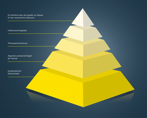 Eine Zertifizierung, beispielsweise durch den DVGW, ist obligatorisch. DIN-DVGW- oder DVGW-zertifiziert bedeutet: Die Übereinstimmung eines Produkts mit den Anforderungen des DVGW-Regelwerks und die Übereinstimmung mit den einschlägigen DIN-Normen. Damit besteht für den Anwender die notwendige Sicherheit für den Einsatz in Trinkwasseranlagen, gerade im Hinblick auf die hygienischen Anforderungen. Für Dimensionierung, Verlegung, Dämmung, Druckprüfung, Spülung, Schallschutz und den vorbeugenden baulichen Brandschutz gelten die bekannten Normen und Regelwerke.
