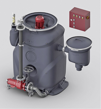Bei den Tecesepa-S-Fettabscheidern deckt ein Modulsystem mit nur wenigen standardisierten Bauteilen über 80 % der Anwendungsfälle ab (Konfigurator auf: tecesepa.tece.de). Die Module werden montagefertig angeliefert und erst im Keller zusammengefügt. Das wichtigste Modul ist der Grundkörper selbst, der in den Größen NS 2 bis NS 10 mit drei verschiedenen Probeentnahmevorrichtungen verfügbar ist und als nahtloser Hohlköper aus Polyethylen hergestellt wird. Teleskopaufsätze für die Erdeinbauvariante sorgen für Flexibilität. Zwei vorkonfektionierte Reinigungspakete, das halbautomatische Paket Typ 200 und das vollautomatische Typ 400, ermöglichen einen komfortablen Betrieb der Anlage. Die elektronischen Steuerungen für die Reinigungspakete verfügen über ein Programm zur Hygienespülung. Das eingebaute Rührwerk verhindert zusätzlichen Wasserverbrauch: Statt den Fettabscheider mit Frischwasser zu spülen, homogenisiert das Rührwerk zur Entleerung die Schichten des Fettabscheiders ohne zusätzliches Wasser.