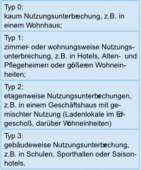 Die Planung einer Trinkwasser-Installation erfolgt auf Basis der späteren Nutzung und Nutzungsgewohnheiten. Es lässt sich also frühzeitig ableiten, ob und wie hoch das Risiko einer Gefährdung der Trinkwasserqualität durch die Art der Nutzung und durch Nutzungsunterbrechungen (z.B. in Krankenhäusern oder Schulen) ist. Die Dauer von Unterbrechungen ist jedoch entscheidend für den Erhalt der Trinkwassergüte, da dann selbst in einer unter hygienischen Gesichtspunkten optimal geplanten und ausgeführten Trinkwasseranlage das Wasser stagniert. Stagnation aber stellt, neben unzulässiger Erwärmung bzw. Abkühlung, ein potenzielles Verkeimungsrisiko dar. Wie man das nutzungsbezogene Risiko durch ein intelligentes Spülsystem und eine entsprechende Installationsweise wirkungsvoll und kostengünstig verringert, lässt sich aus der von Viega entwickelten Gebäudetypisierung ableiten: