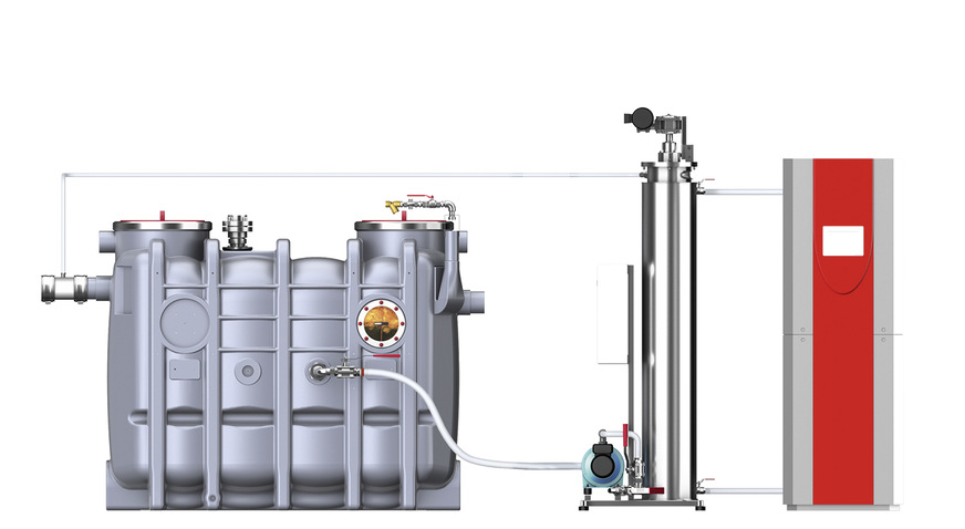 Schnittstelle für die Installation des Wärmerückgewinnungssystems sind dabei die Fettabscheider. Das vom Küchenbetrieb generierte warme Abwasser gelangt zunächst über eine Zulaufverrohrung in den Fettabscheider, der nicht nur Fette und Öle aus dem Abwasser zurückhält, sondern gleichzeitig auch als eine Art Pufferspeicher dient.