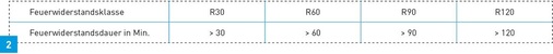 Nach der Landesbauordnung ist die erforderliche Feuerwiderstandsdauer in Klassen festgelegt (Bild 2).
