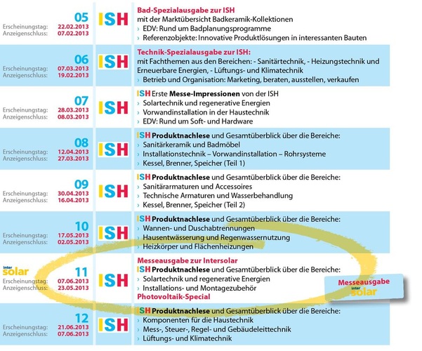 Nur in der SBZ finden Sie die ISH-Neuheiten so kompakt, umfassend und nach den einzelnen Produktbereichen sortiert. Damit Sie auch wissen, welche Themenbereiche wir in welchen Ausgaben behandeln, die nachfolgende Übersicht. Es lohnt sich also einmal mehr, keine SBZ-Ausgabe zu verpassen!
