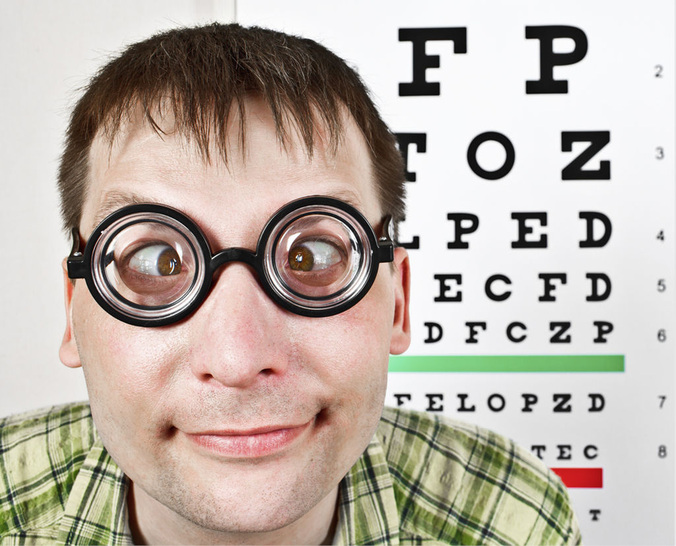 „Guten Tag, mein Herr. Sie brauchen eine neue Brille mit –9 Dioptrien“, sagt der Optiker zum eintretenden Kunden.