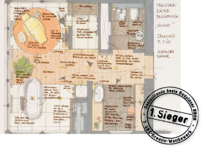 Die Jury lobte den Entwurf von Alexandra Nagler, weil er konsequent zwischen den funktionalen und Freizeit-Bereichen unterschieden hat. Es entstanden so kurze Laufwege für die tagtäglichen Abläufe einer Single-Frau im Badezimmer. Sowohl die Kombination von Schmink- und Waschplatz als auch die Trennung der verschiedenen Bereiche mittels unterschiedlicher Materialien konnte überzeugen. Zudem erreiche Alexandra Nagler ein hohes zeichnerisches Niveau, fand die Jury. Die Realisation des Bades soll nach Angaben von Alexandra Nagler rund 60000 Euro betragen.