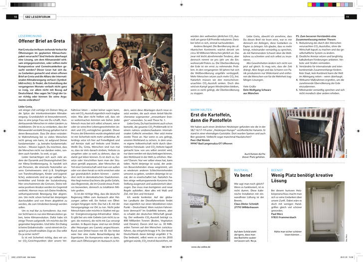 Eine Reaktion auf den offenen Brief an Greta Thunberg aus der SBZ 24-2019: Unser Leser findet, dass in dem Brief nur die halbe Wahrheit gesagt wird, und schreibt uns ausführlich seine Meinung dazu. Wie finden Sie das, liebe SBZ-Leser?