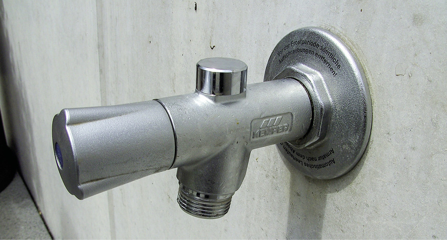 Die Bilder wurden angefertigt in einem Neubau, Erstbezug im Dezember 2020. Das Datum ist wichtig, denn hier wurde vorgegangen, als lebten bzw. arbeiteten wir noch in den 70er-Jahren: Das Auslaufventil wurde mit Schlauchanschluss angeschlossen an die Trinkwasserinstallation! Ohne RV + RB, exakt nach den Regeln DVGW/DIN, und dann auch noch montiert durch einen Fachhandwerker! Und das i-Tüpfelchen: In diesem Gebäude gibt es auch noch eine Regenwassernutzung, frei zugänglich, ohne gesicherte Armatur und ohne Hinweisschild: Kein Trinkwasser.