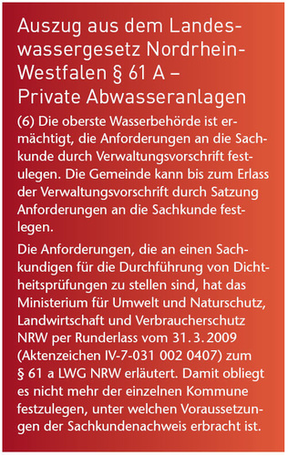 Der Runderlass bezüglich der Anforderungen an die Sachkunde für die Durchführung der Dichtheitsprüfung von privaten Abwasserleitungen gemäß § 61 a LWG in Nordrhein-Westfalen