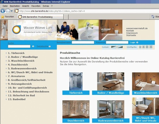 In der Datenbank https://www.shk-barrierefrei.de/ finden Sie die Produktentwicklungen nach Bereichen sortiert, die speziell für den Barrierefrei-Bereich entwickelt wurden. Je nach körperlichem Defizit werden Produkte vorgeschlagen, die diese Einschränkung kompensieren.