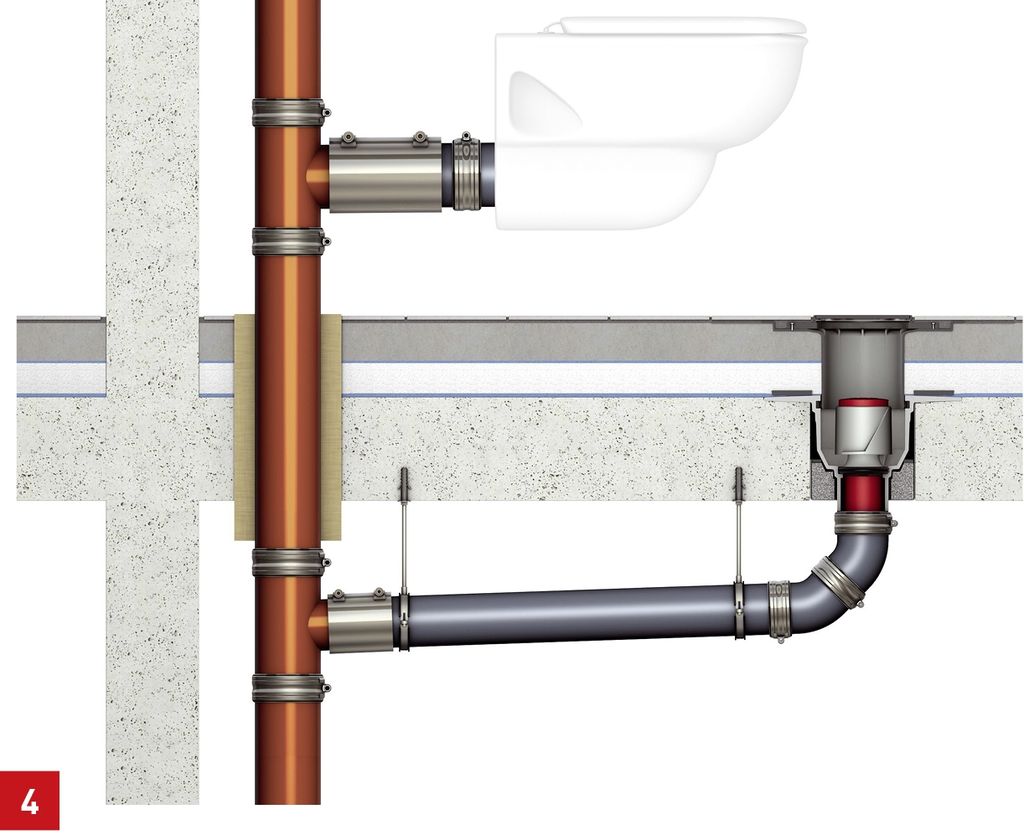 - Brennbare Entwässerungsleitungen inkl. brennbarer Anschlussleitungen und Abschottungen mit AbZ und brennbare und nichtbrennbare Bodenabläufe mit AbZ (Bild 3).